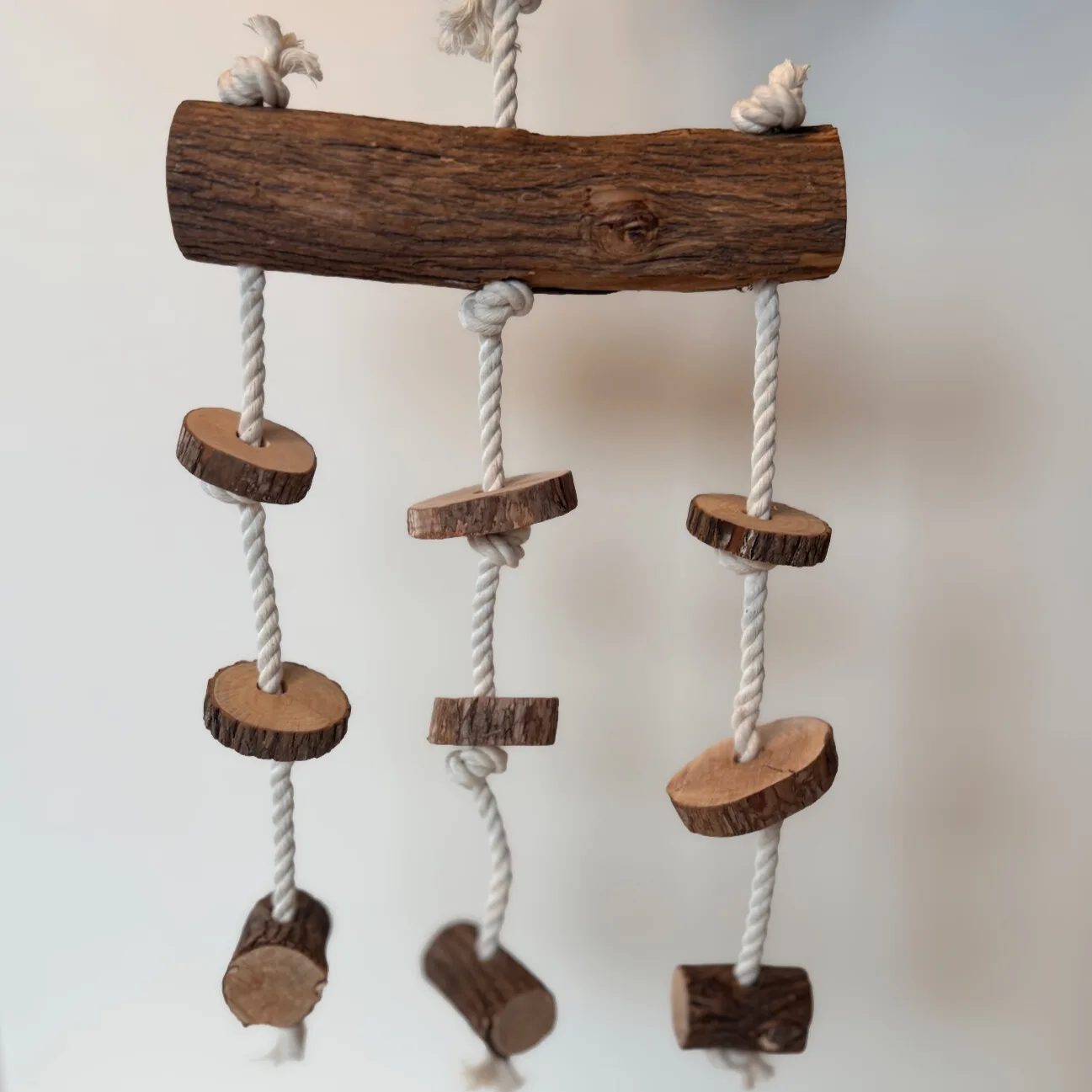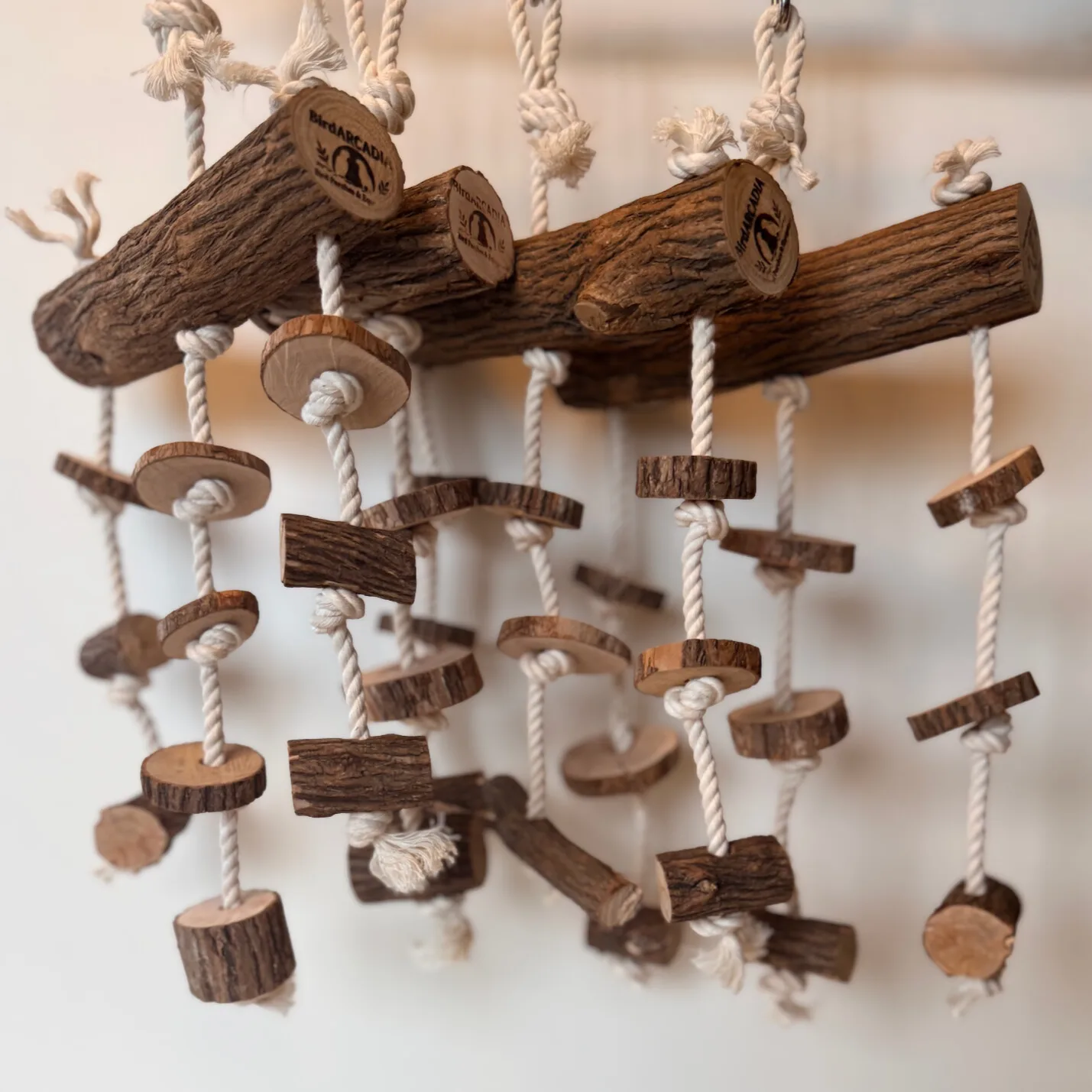 凹凸のある天然木が足裏を刺激し、爪や関節のケアに役立ちます。遊びとストレス解消
