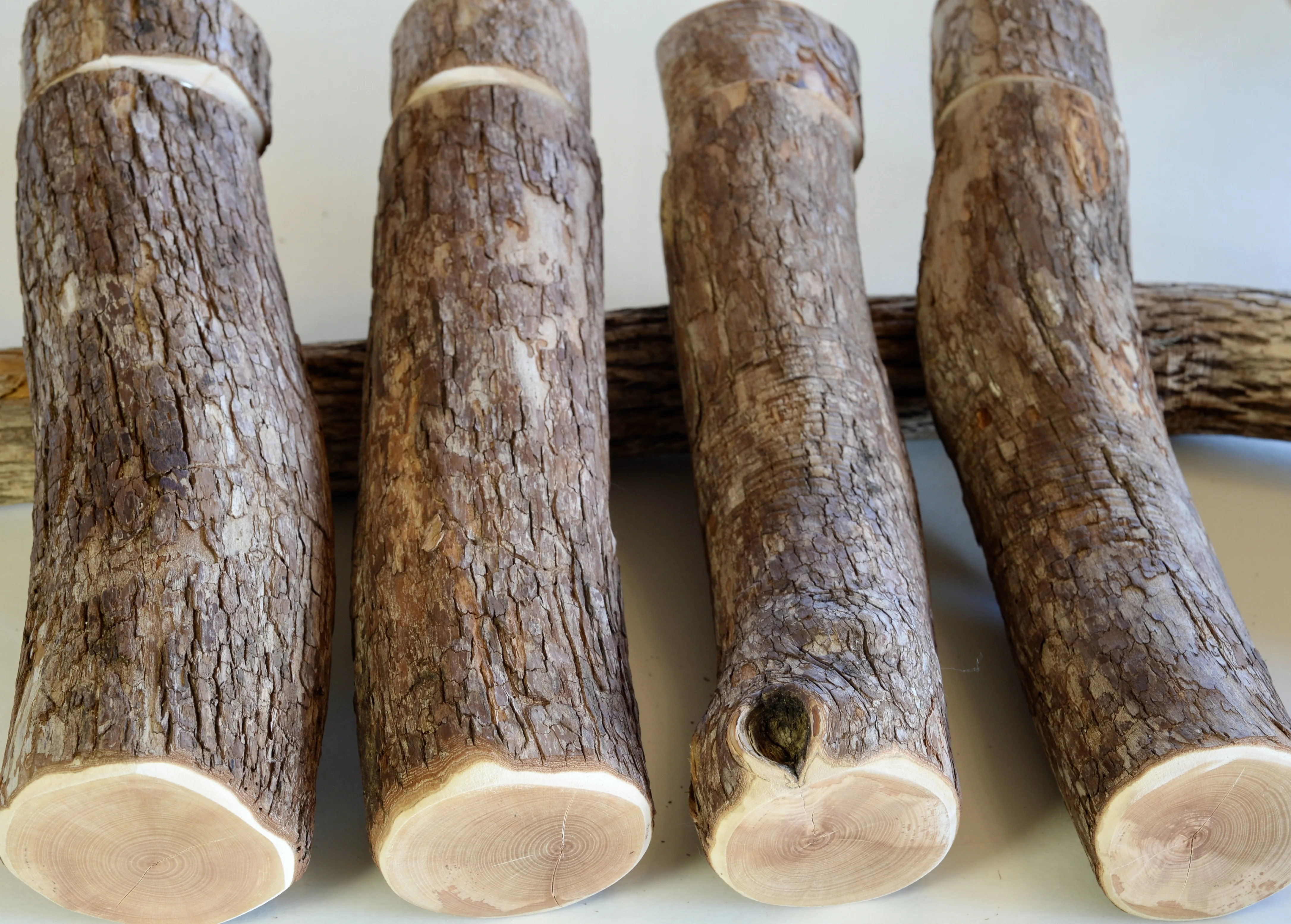 天然木のため、形状(曲がり・ねじれ・太さ)、色合い、節や凹凸には個体差があります。